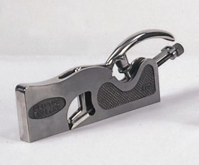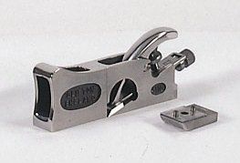 3110 Plane An extremely versatile tool, combining the features of shoulder rebate, chisel plane and adjustable mouth bull-nose plane. As a shoulder plane, the front extension piece is fitted; as a chisel plane, all nose pieces are removed; and as a bull-nose plane, the thinner nose piece is fitted, in conjunction with one or both of the precision machined steel shims (1/32 and 1/64) or for really fine work it can be used without either shim. The body is machined from a quality grey iron casting and precision ground on the soles and sides. The lever arm is also of grey iron. The cutting iron fits smoothly on to the machined pads in the body and can be adjusted by means of the screw. The finish is bright ground. |